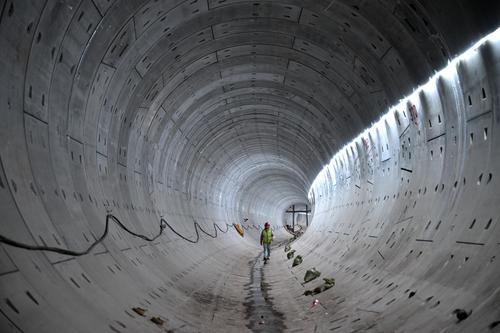 图为,建设者正在区间加紧生产施工。