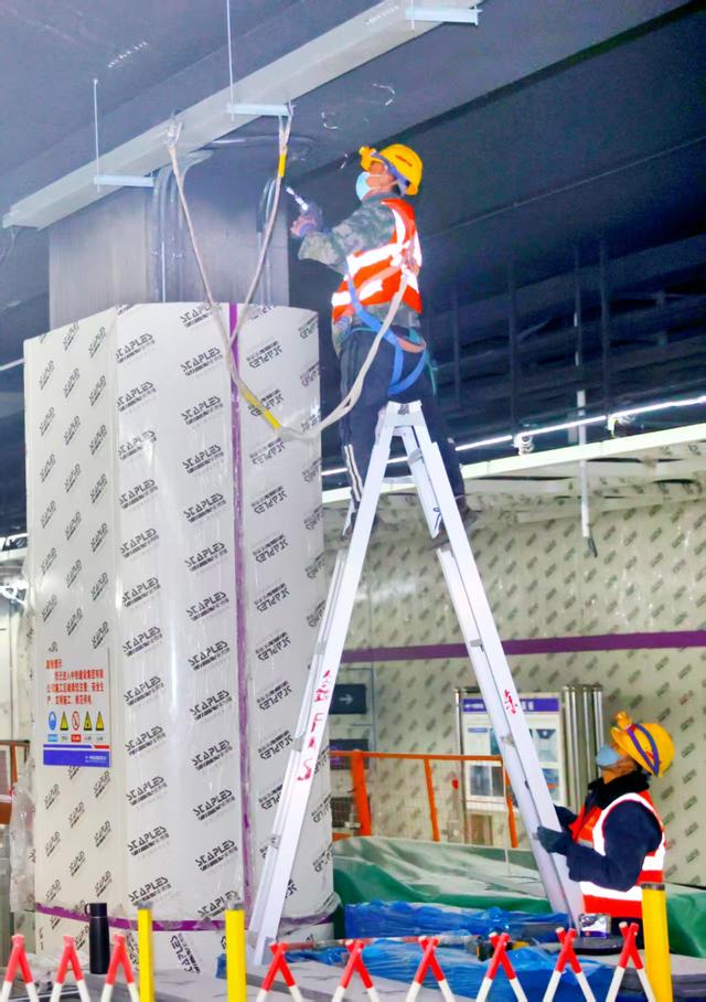 截止目前,二工区的主体结构基本完成。图为汽车公园站施工点的工人正在进行机电安装及装饰装修作业。